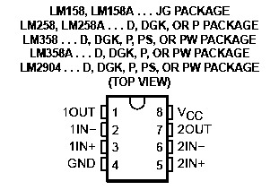 Le brochage (dip-8) du LM358 se présente ainsi: