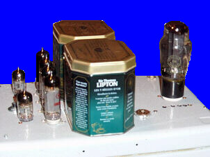 Ne vous inquiétez pas pour les boites de thé LIPTON qui servent de blindage pour les transfos de sortie, elles seront peintes...et cette pub n'est qu'éphémère.