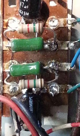 Je constate que l'un des borniers de raccordement sur le 6,3 volts des filaments a fondu et le fil s'est coupé.